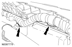 13. NOTICE: When installing the cooling module retaining clips, push the cooling module retaining clips toward the radiator grille support until the clips are properly secured and a snap is heard. Failure to properly secure the cooling module retaining clips may cause damage to the radiator or the cooling module assembly.
