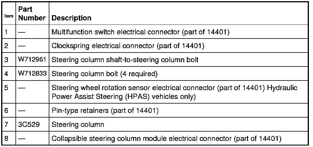 NOTE: Hydraulic Power Assist Steering (HPAS) steering column shown, Electronic Power Assist Steering (EPAS) steering column similar.