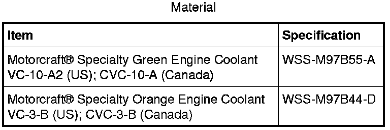 1. NOTICE: Use Motorcraft(R) Specialty Green Engine Coolant or Motorcraft(R) Specialty Orange Engine Coolant. Use the same type of coolant that was originally used to fill the cooling system. Do not mix coolant types. Mixing coolant types degrades the coolant corrosion protection and may damage the engine or cooling system.