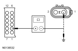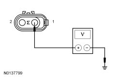 - Measure the voltage between the AM/FM antenna C2086-1, circuit 15S-MD7 (GN/BU), harness side and ground.