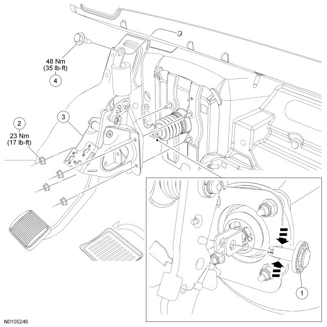 3. Remove the brake booster actuating rod from the brake pedal in the following sequence.