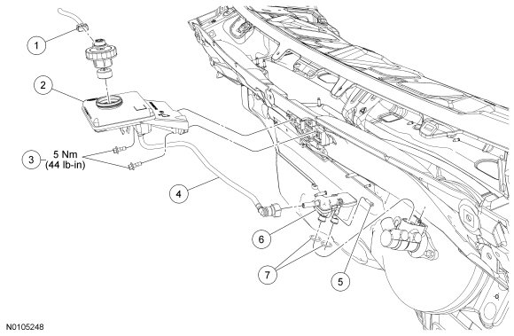 NOTICE: Do not spill brake fluid on painted or plastic surfaces or damage to the surface may occur. If brake fluid is spilled onto a painted or plastic surface, immediately wash the surface with water.