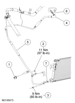 6. Remove the condenser outlet fitting nut and disconnect the fitting.