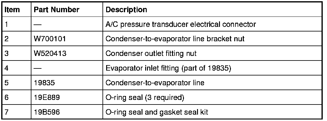 7. Detach the condenser-to-evaporator line from the 2 line brackets at the RH front wheel well.
