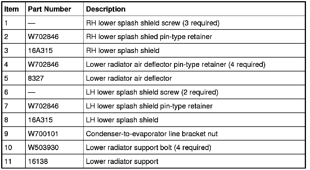 4. Remove the 4 lower radiator air deflector pin-type retainers and the lower radiator air deflector.