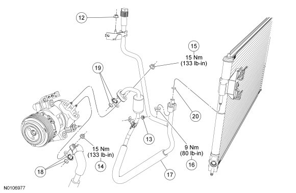 - Add the correct amount of clean PAG oil to the refrigerant system. For additional information, refer the Refrigerant Oil Adding procedure in Heating and Air Conditioning.