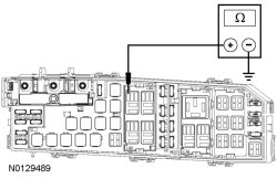 - Measure the resistance between auxiliary blower motor relay pin 2, circuit 31-NC12 (BK) and ground.