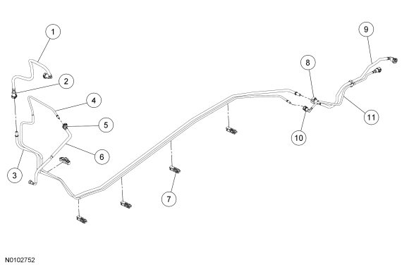 8. Release the 5 fuel tube bundle retainer clips and remove the fuel supply and vapor tubes.