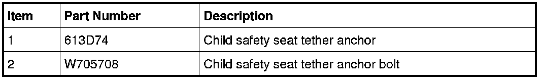 WARNING: Always tighten the child safety seat tether anchor/bolt to specification. Failure to follow this instruction may result in the child's safety seat being incorrectly secured, which increases the risk of serious personal injury or death to the child in a sudden stop or crash.