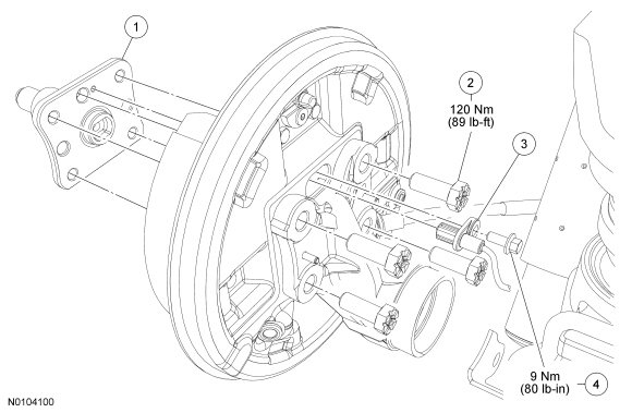 1. Remove the wheel bearing and wheel hub. For additional information, refer to Wheel Bearing and Wheel Hub Rear Suspension.