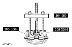 1. Using the Bearing Puller, Front Hub Tool and Step Plate, remove the RH transfer shaft gear bearing.