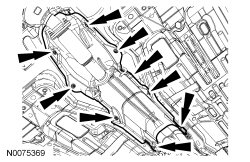 7. Remove the 8 fasteners from and the exhaust heat shield.