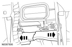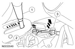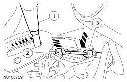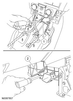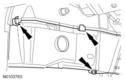8. NOTE: When installing the selector lever cable, make sure that the selector lever cable locking tabs are locked in place and the selector lever cable end is snapped onto the ball stud. Press the selector lever cable into the selector lever cable bracket and listen for the selector lever cable to click in place. Pull back on the selector lever cable to make sure that it is locked into the selector lever cable bracket. Also make sure that the selector lever cable end is correctly installed onto the ball stud. Pull back on the selector lever cable end to make sure that the selector lever cable end is correctly installed.