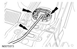 13. NOTICE: When cutting the carpet, use care not to damage the heater core and evaporative core housing.