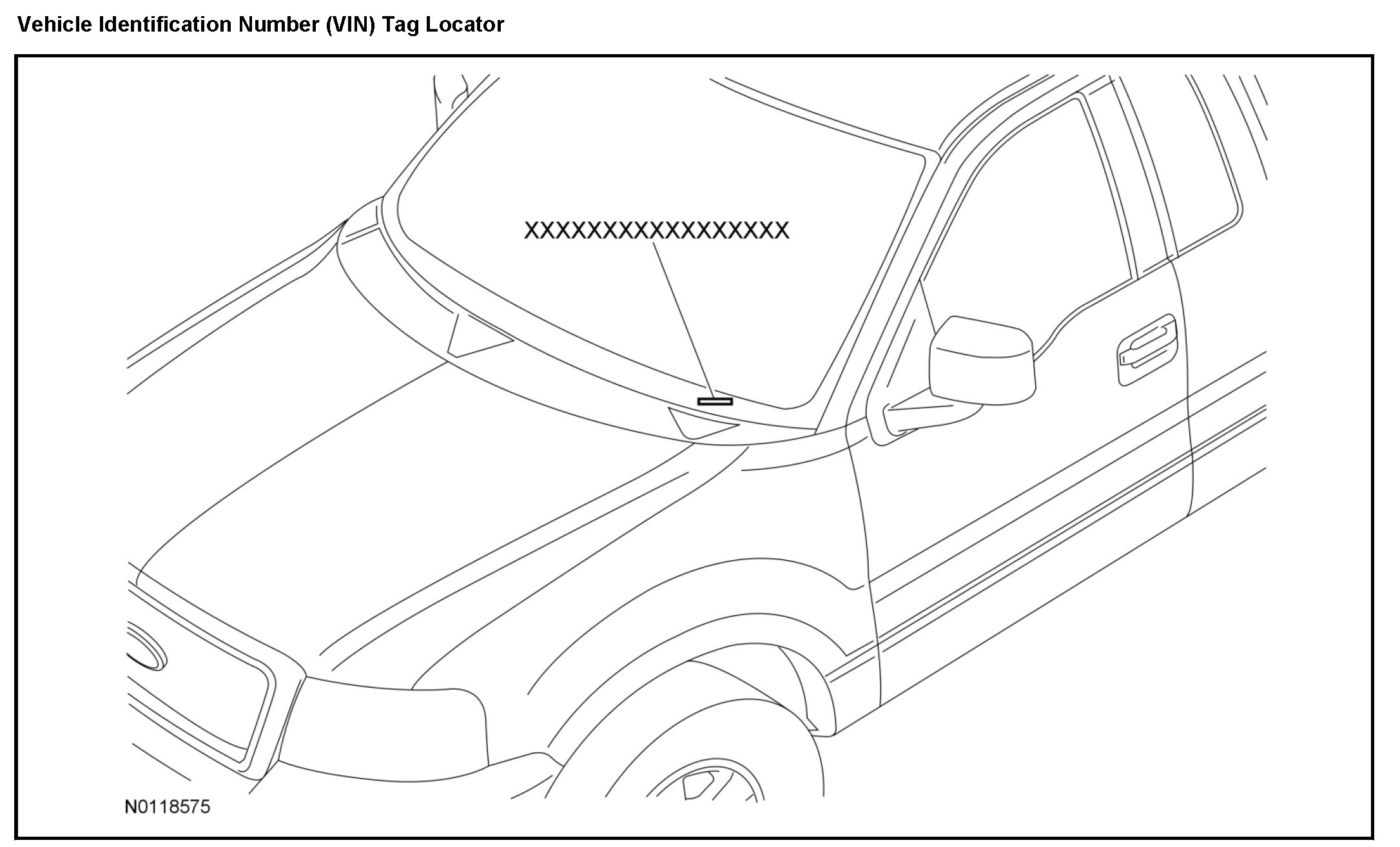 The Vehicle Identification Number (VIN) is a 17-digit combination of letters and numbers. The VIN is stamped on a metal tab riveted on the instrument panel, top upper left of the dash. The VIN is also found on the Vehicle Certification (VC) label.