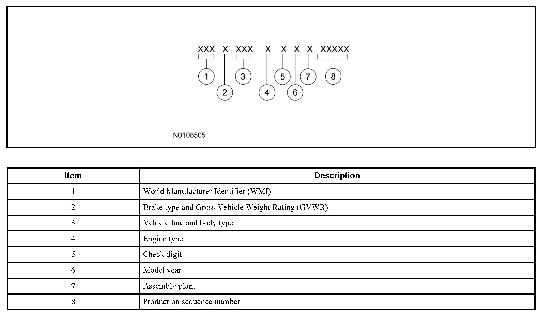VIN positions 5 through 7 indicate the vehicle line and body type.