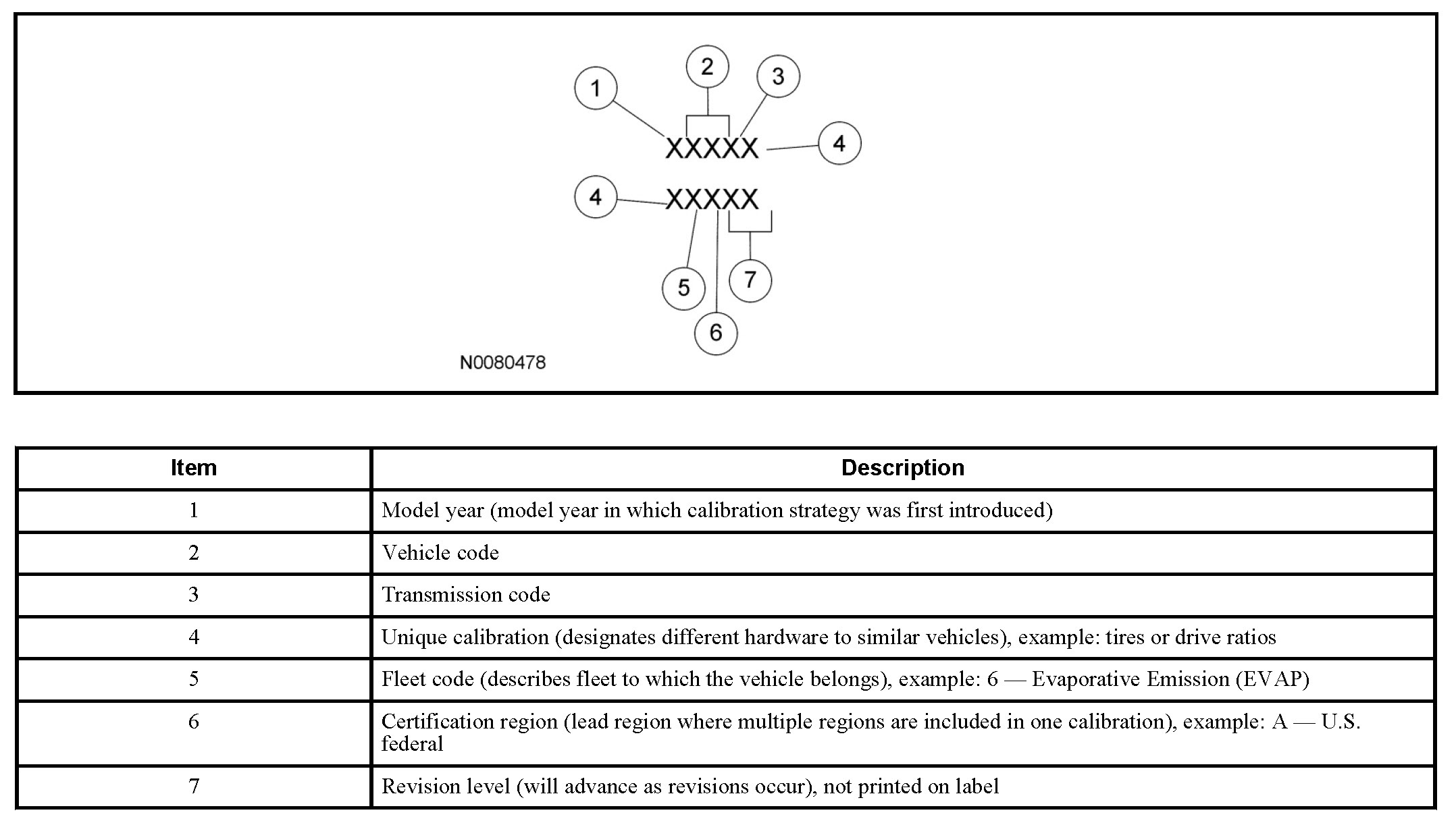 The Emissions/Corporate Average Fuel Economy/CO2 Compliance Department is responsible for assigning these calibration numbers. Unique calibration identifications are assigned to cover similar vehicles to differentiate tires, drive configurations, final drive ratios and other calibration-significant factors.