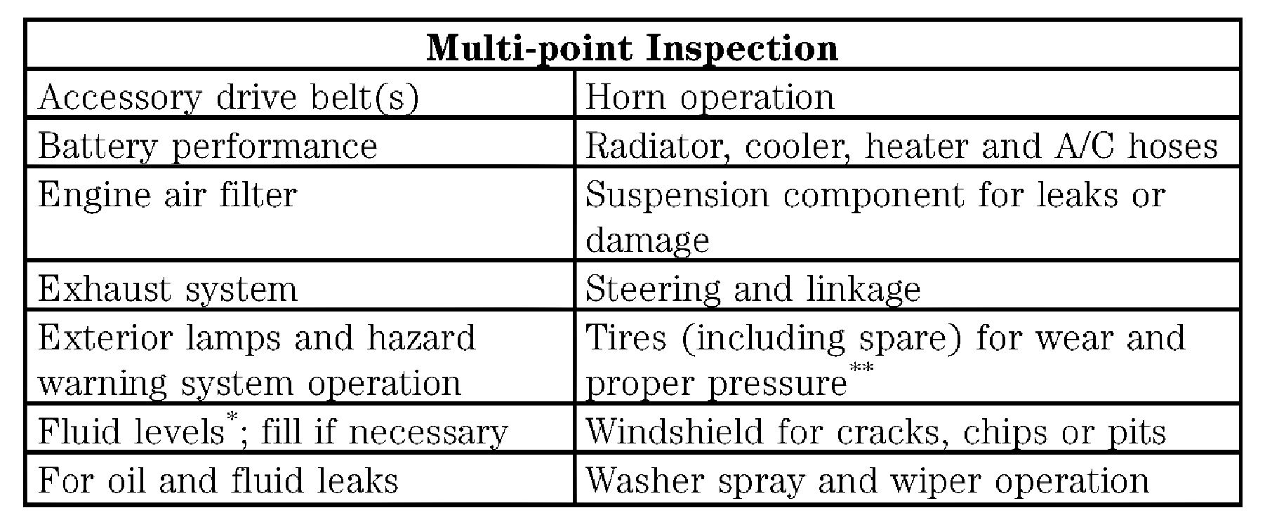 In order to keep your vehicle running right, it is important to have the systems on your vehicle checked regularly. This can help identify potential issues and prevent major problems. Ford Motor Company recommends the following multi-point inspection be performed at every scheduled maintenance interval to help make sure your vehicle keeps running great.