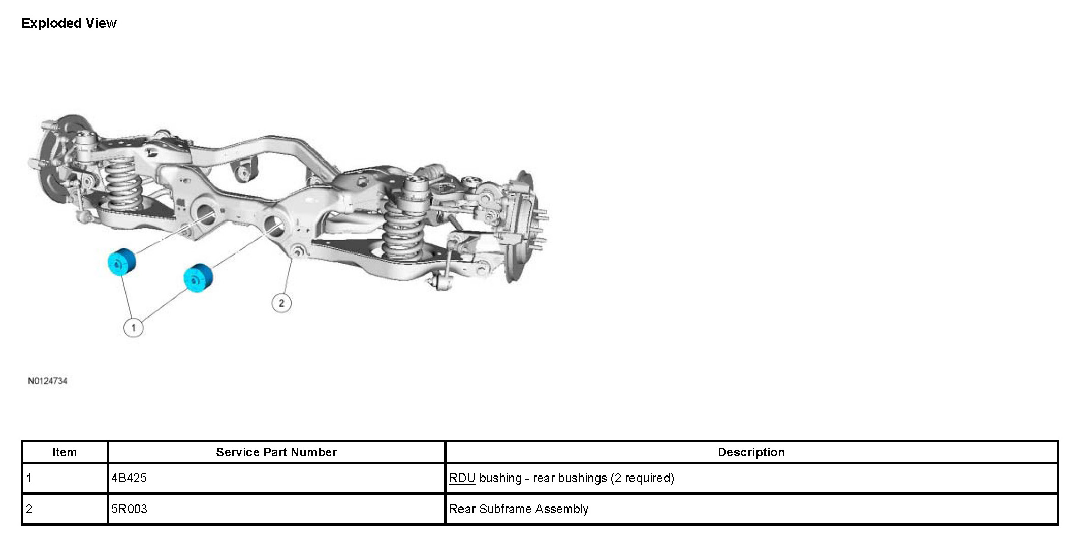 - There are 2 RDU rear bushings in the rear subframe. This procedure shows how to install one bushing. The procedure for the remaining RDU bushing is identical.
