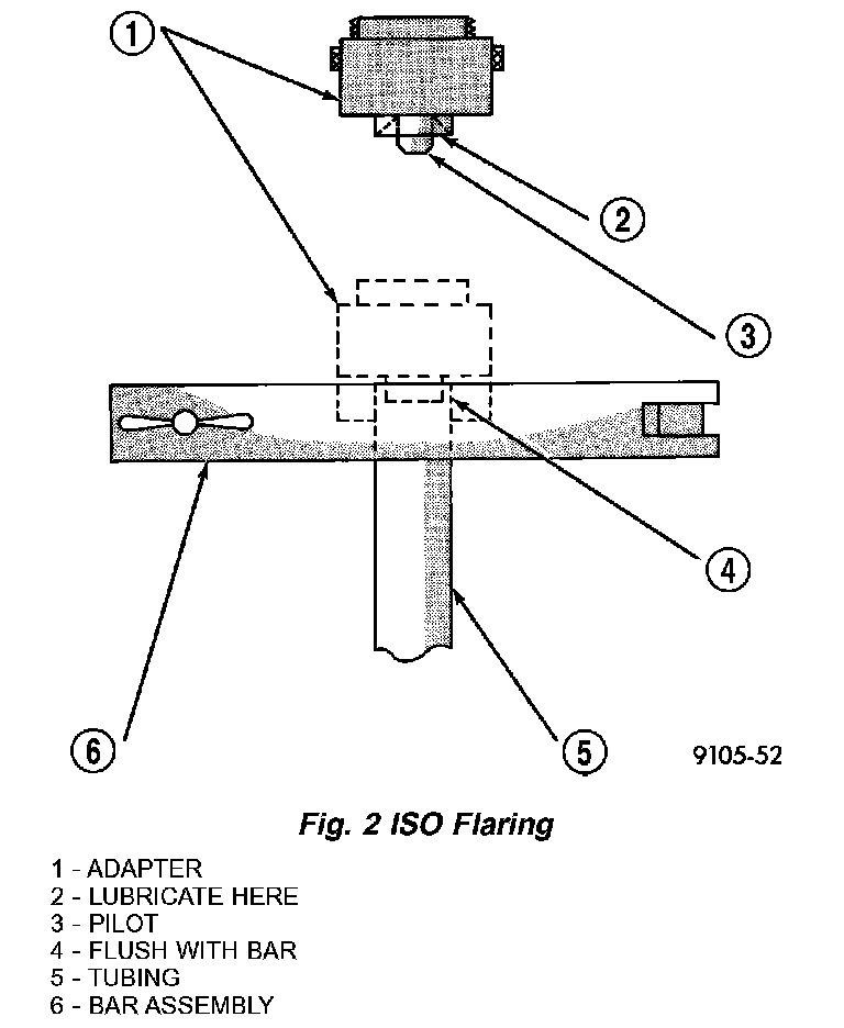 4. Position the tube in the flaring tool flush with the top of the tool bar (Fig. 2). Then tighten the tool bar on the tube.
