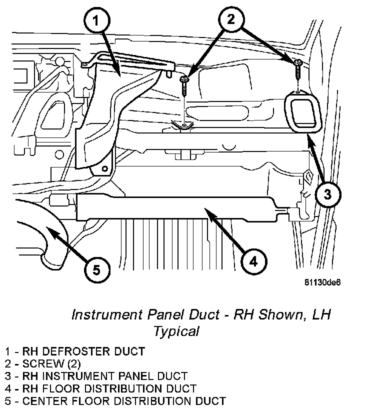 Instrument Panel Duct - RH Shown, LH Typical: