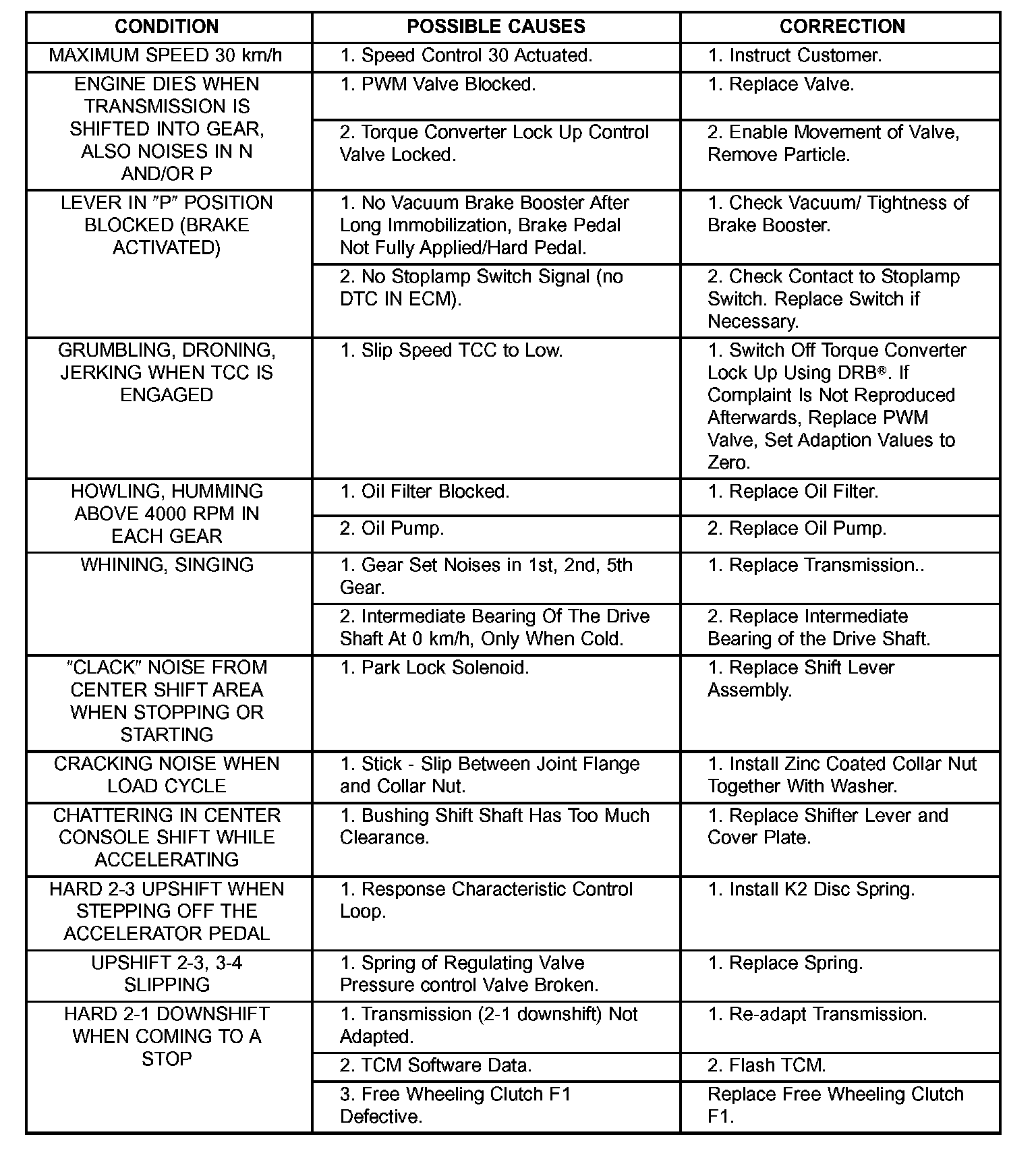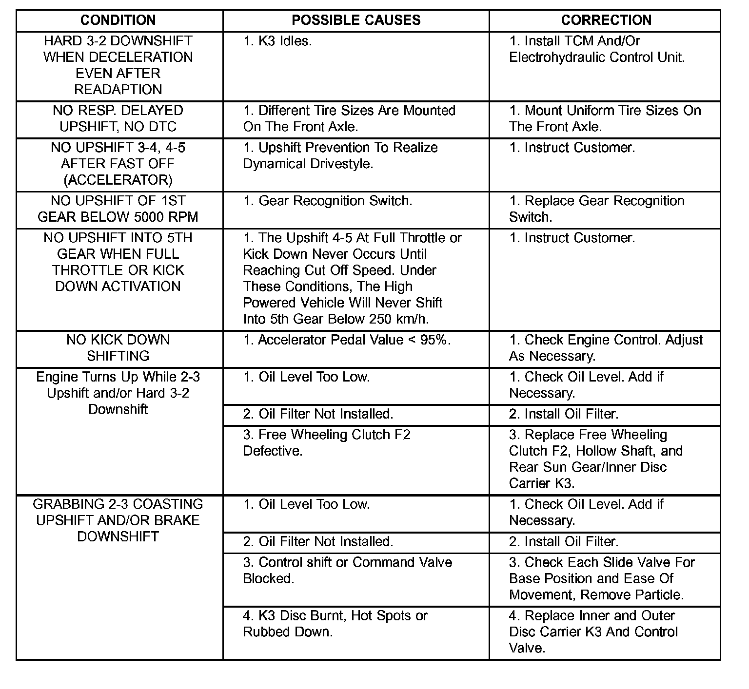 ROAD TESTINGBefore road testing, be sure the fluid level and control cable adjustments have been checked and adjusted if necessary. Verify that all diagnostic trouble codes have been resolved.