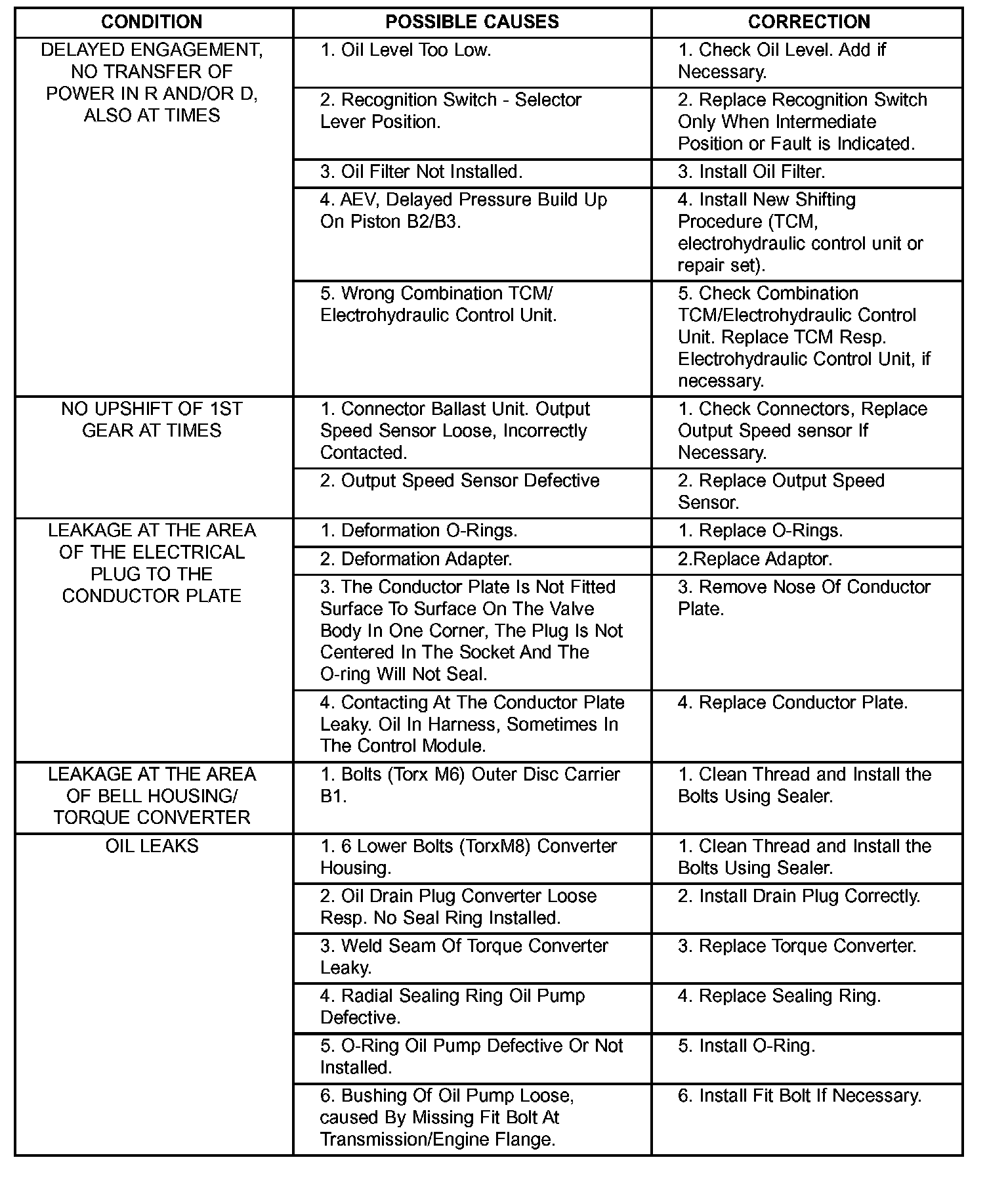 A slipping clutch can often be determined by comparing which internal units are applied in the various gear ranges. The Clutch Application chart CLUTCH APPLICATION provides a basis for analyzing road test results.