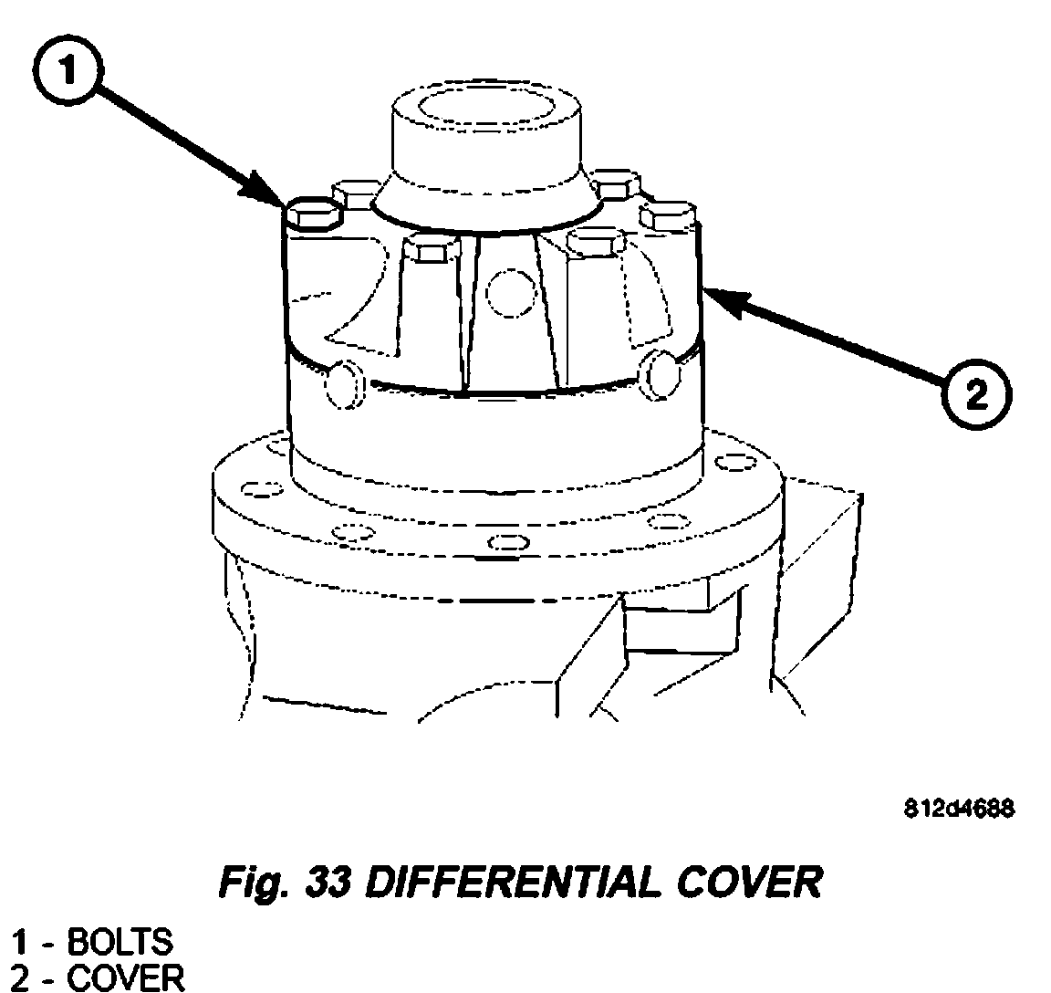 DISASSEMBLY - SINGLE REAR WHEEL1. Remove differential cover bolts and remove cover (Fig. 33).