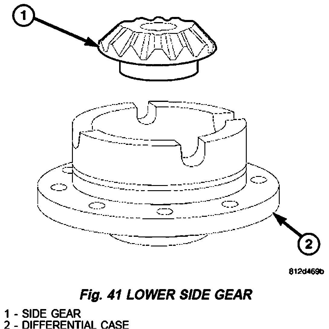 4. Remove lower differential side gear (1) and shim (Fig. 41).