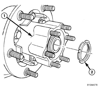 Install outer hub (1) nut (2) and tighten with Hub Nut Socket 10095 to 250 Nm (184 ft. lbs.).