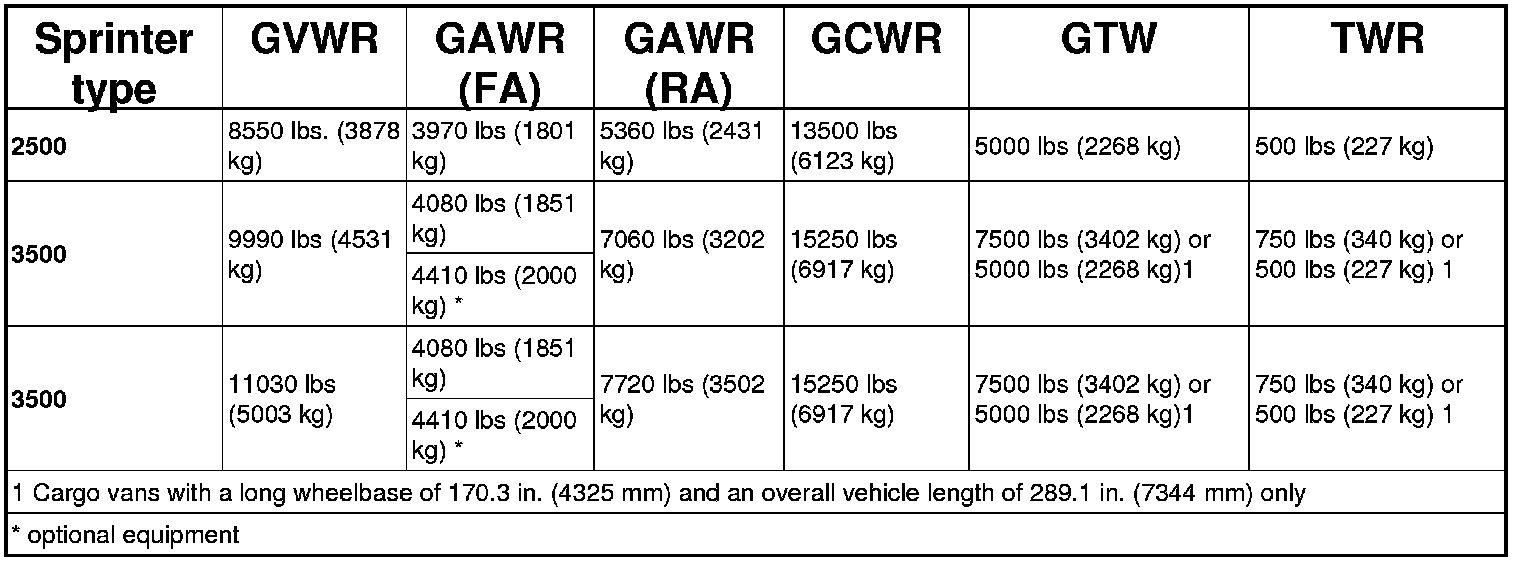 CAUTION: Cargo vans with a long wheelbase of 170.3 in (4325 mm) and an overall vehicle length of 289.1 in. (7344 mm) have a reduced GTW and TWR.