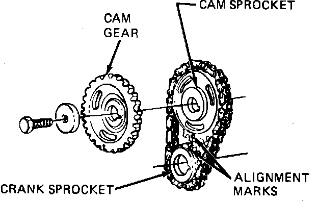 2. Camshaft sprocket with timing chain. Align the timing marks.