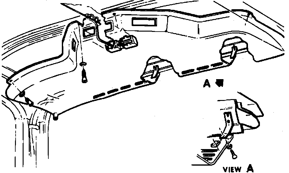 2. Remove rear duct drain tube, duct to header bracket and roof panel screws, then rear duct assembly, Fig. 22.