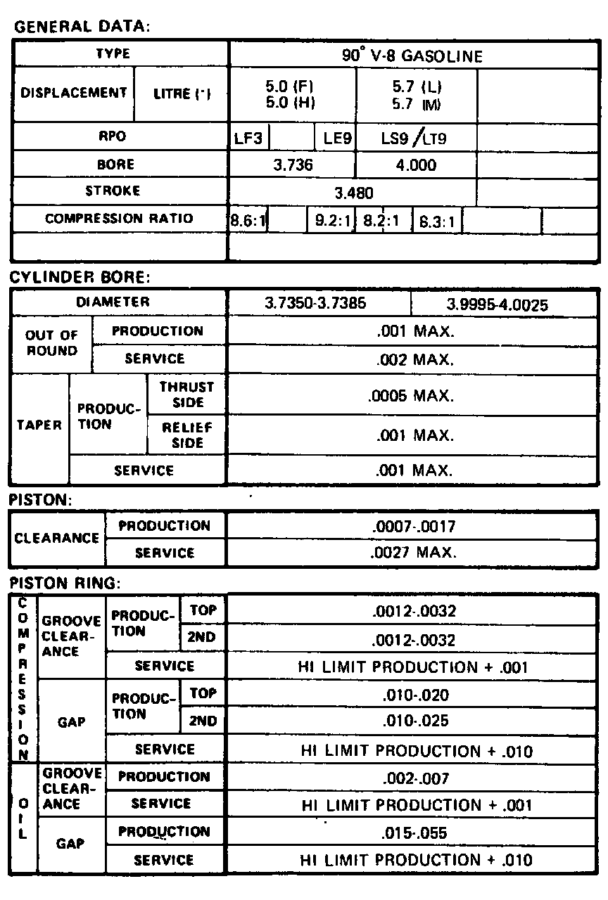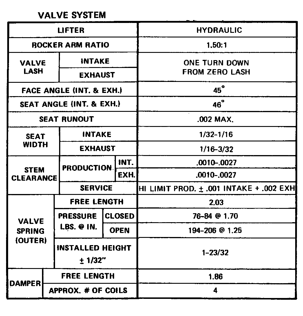 Continued Engine Specifications: