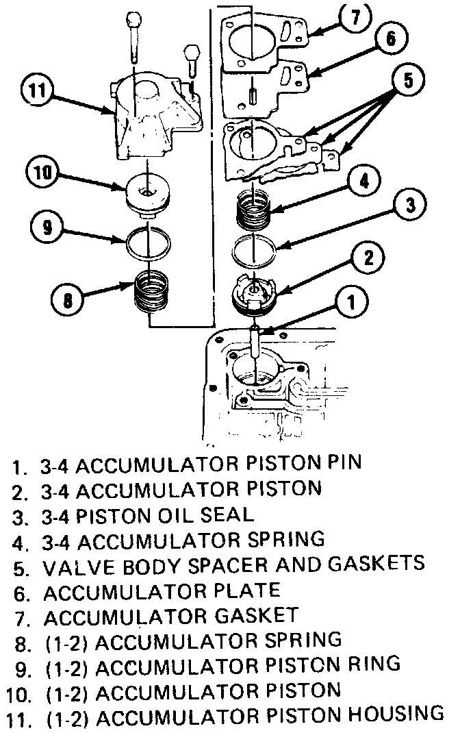 21. Install 1-2 accumulator spring onto the piston. On 1984-88 models, refer to Figs. 83, 84, 84A, 84B and 84C.