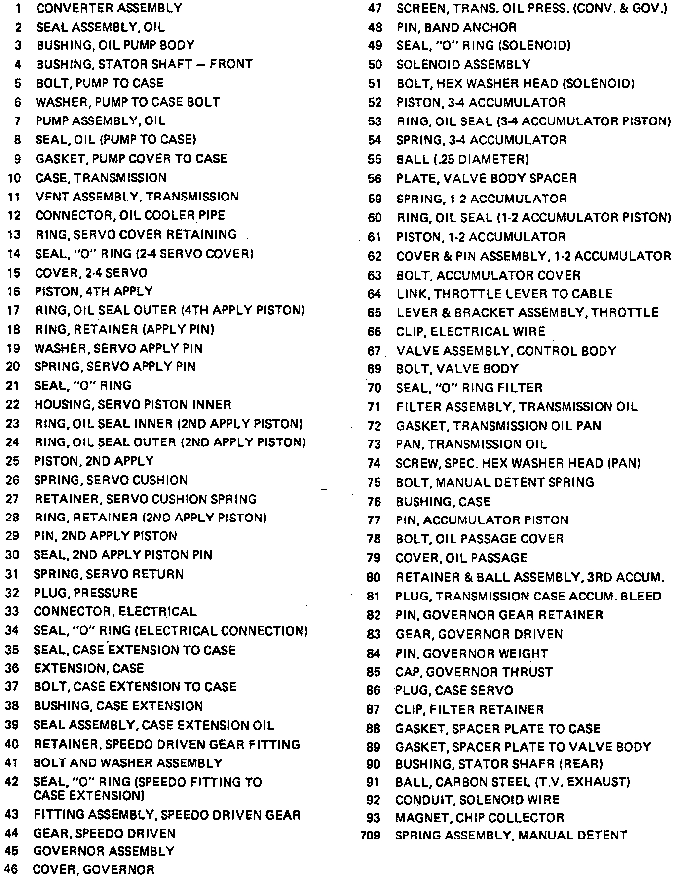 Refer to Figs. 1 and 4 during subassembly service and transmission assembly procedures.