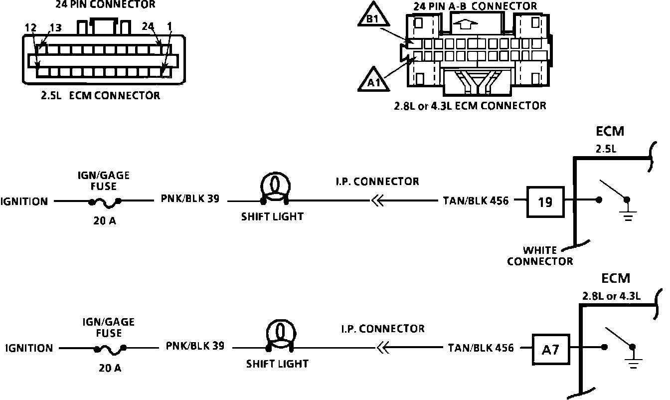3. This checks for an open in the Shift light circuit or a faulty ECM.