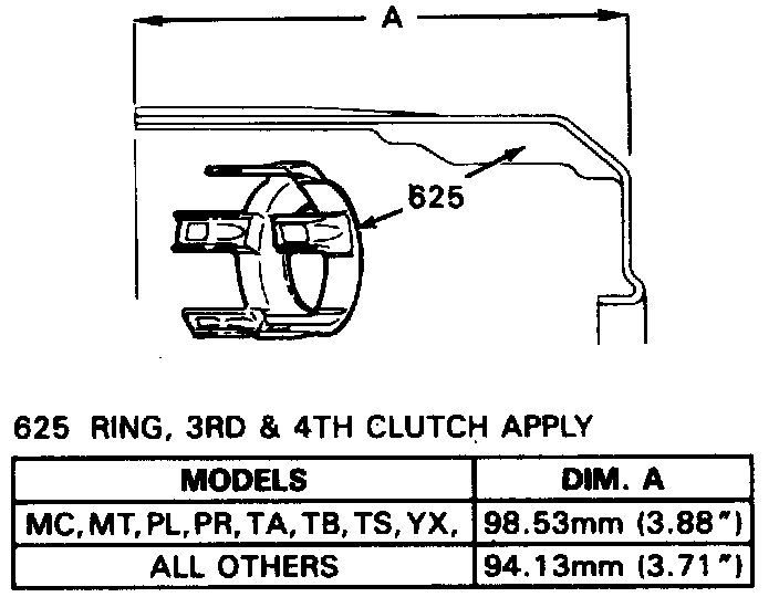 7. Inspect 3-4 clutch apply ring for bent tangs and correct tan length. Refer to image.