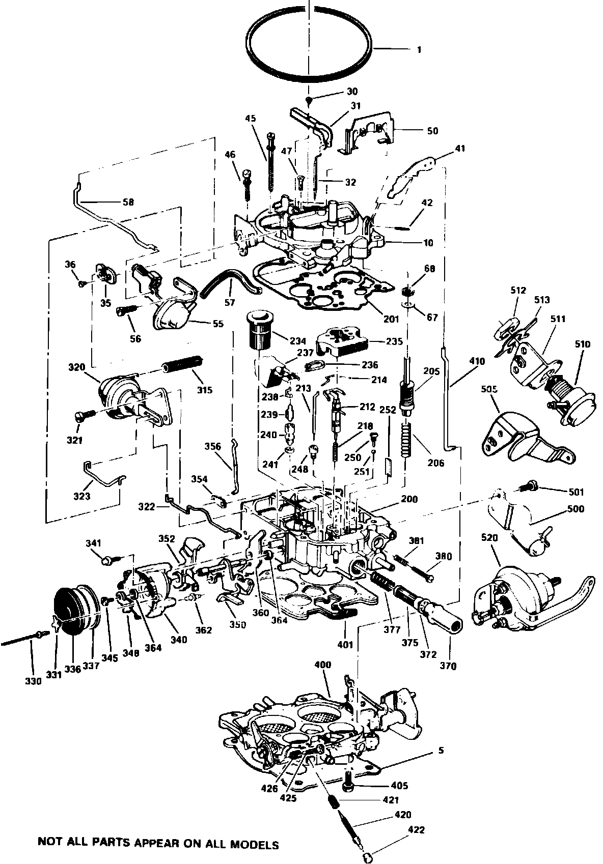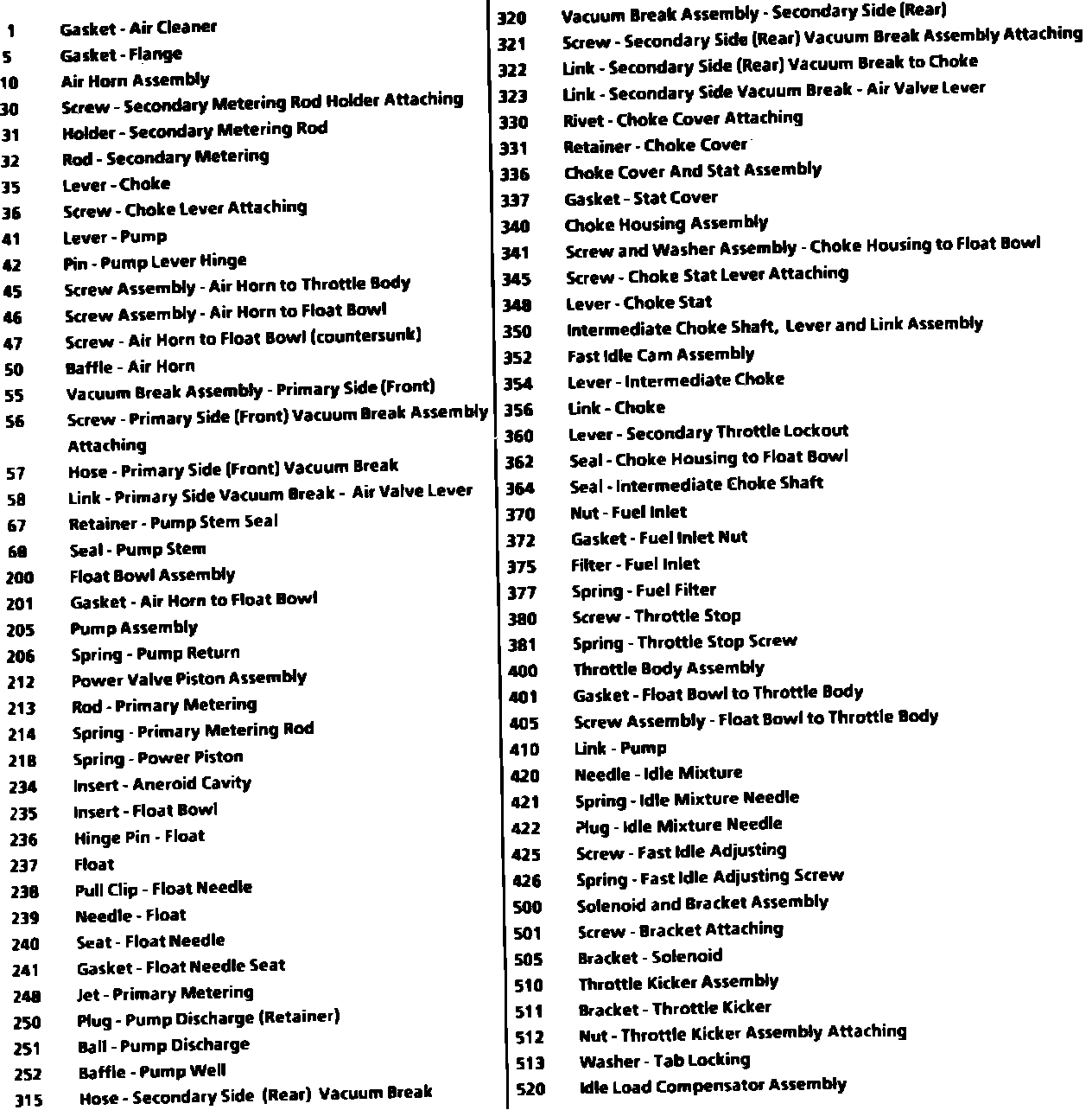Fig. 2 Exploded view of Rochester M4MC Quadrajet carburetor (Part 1 of 2):