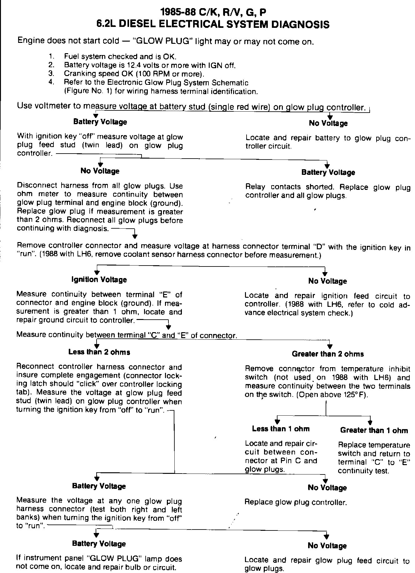 SUBJECT: 1985 - 88 6.2L DIESEL ENGINE GLOW PLUG SYSTEM DIAGNOSIS