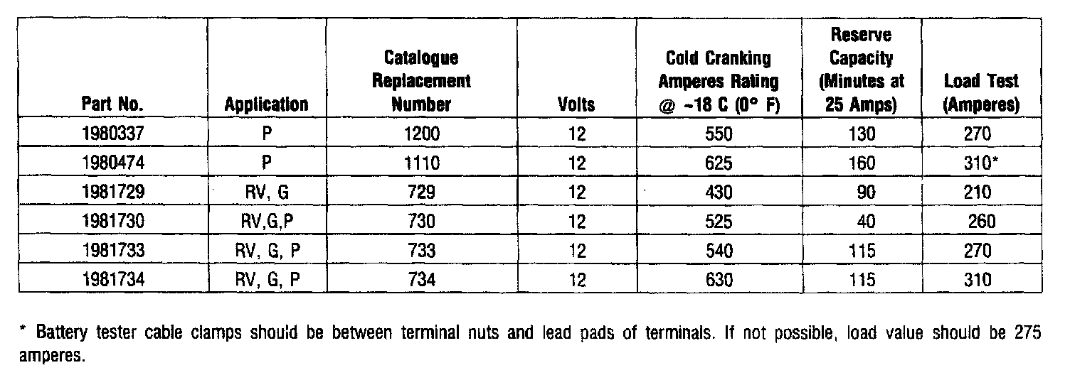 Starting and Charging: Specifications