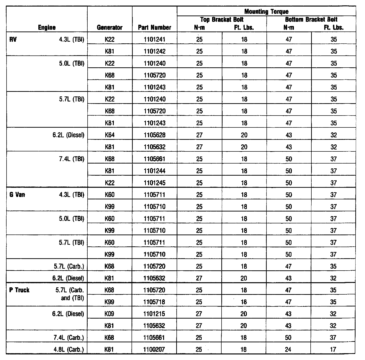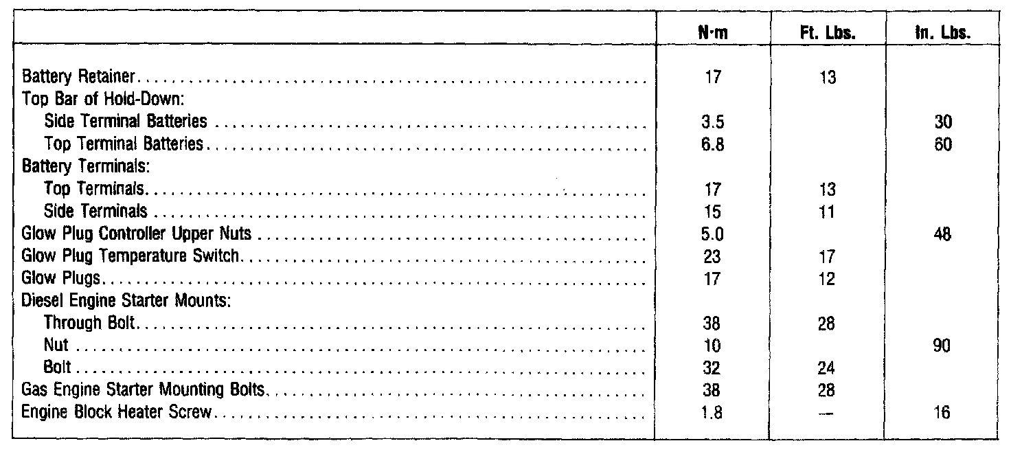 TORQUE SPECIFICATIONS