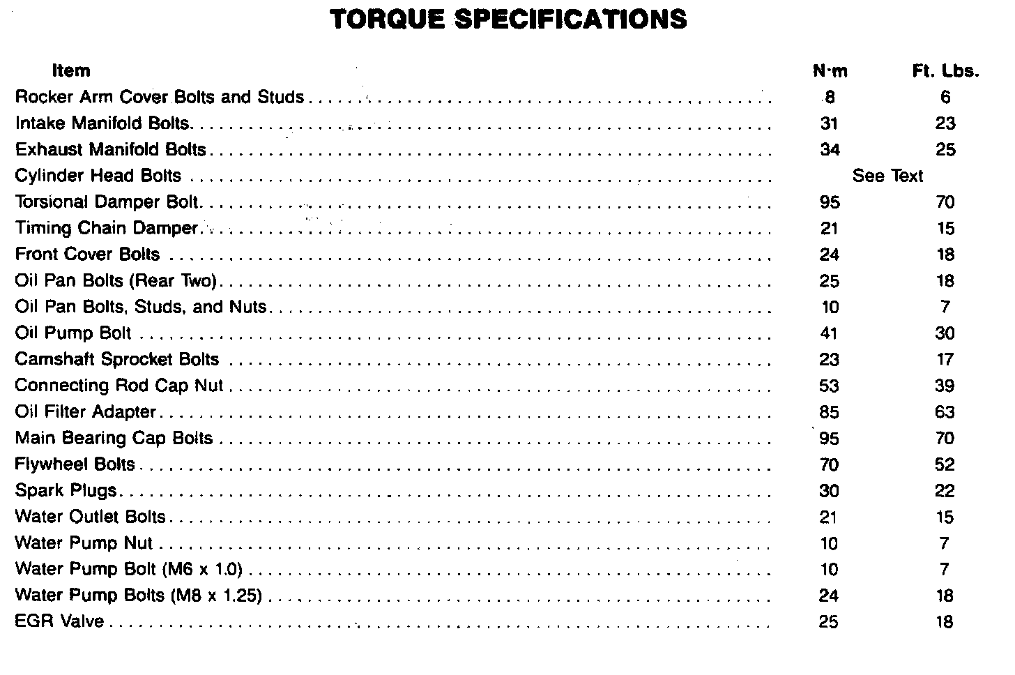 Torque Specifications: