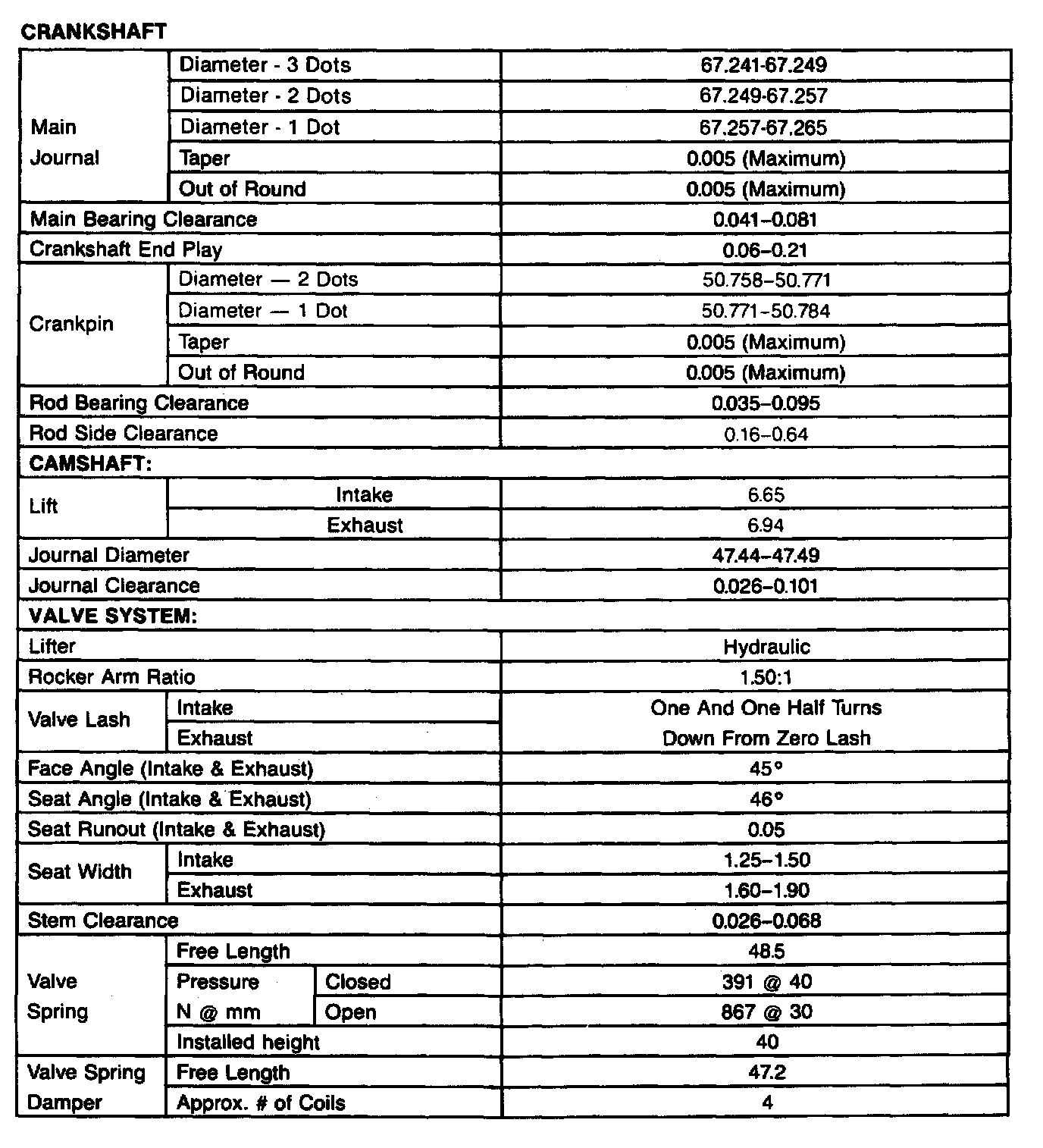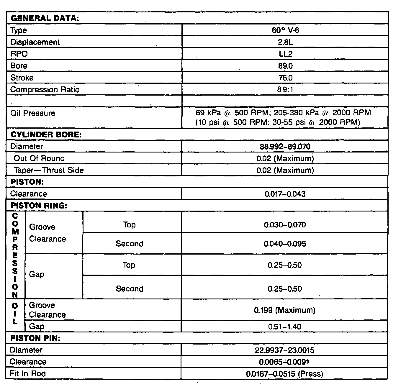 Engine Specifications: