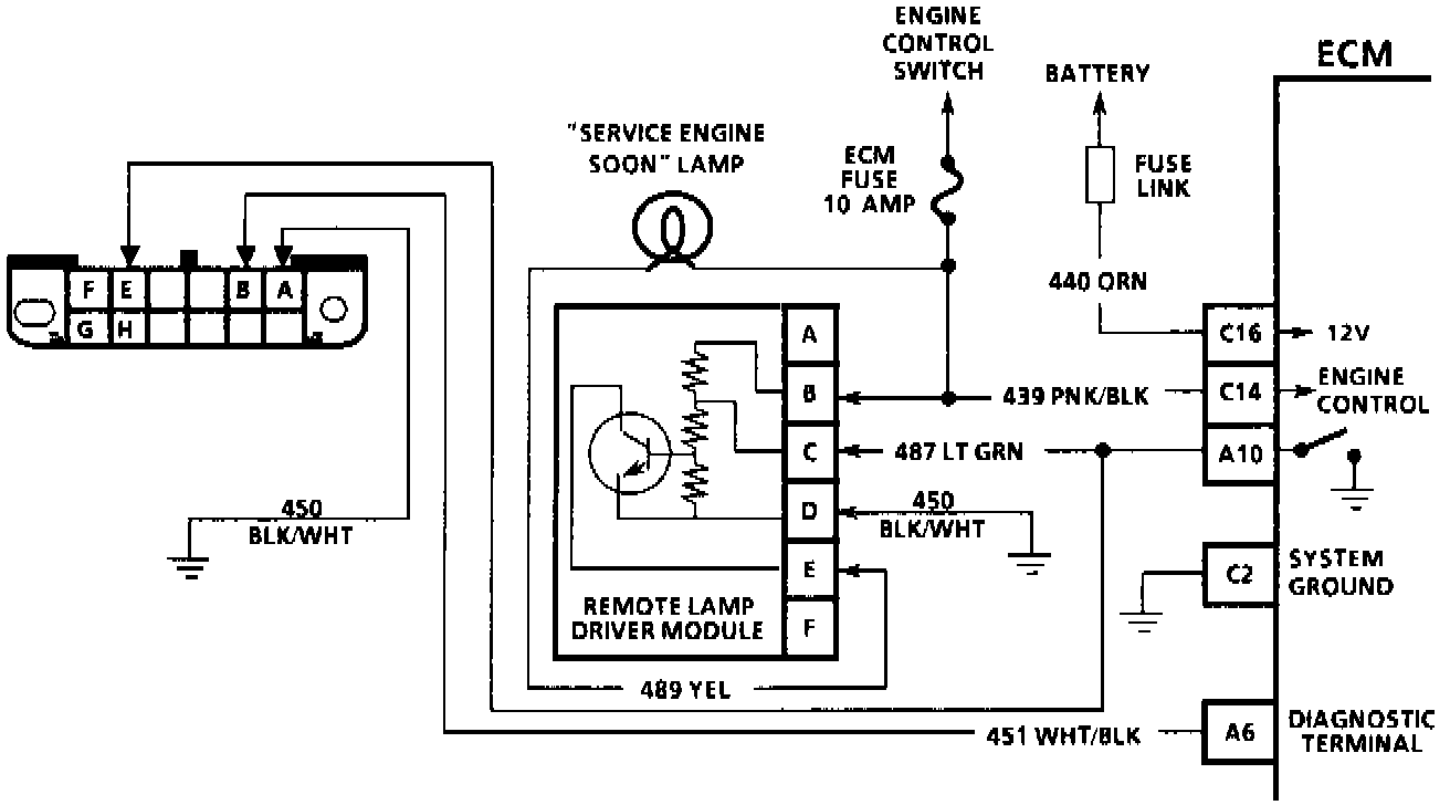 When the engine is started, the ECM grounds terminal "A10" to turn "OFF" the "Service Engine Soon" light. It, alternately, grounds and opens it to flash a code.