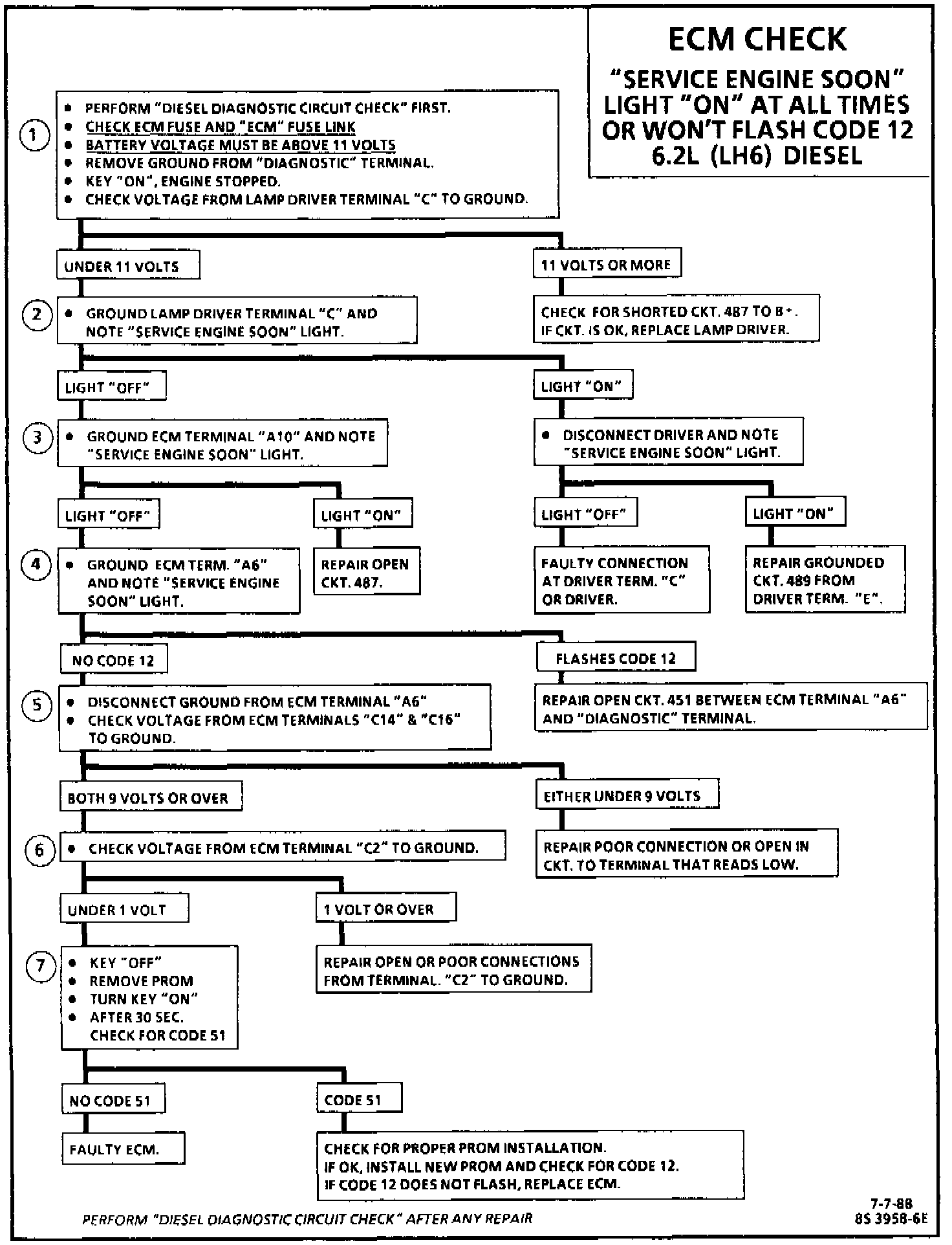 Numbers below refer to the circled numbers on the diagnostic chart.