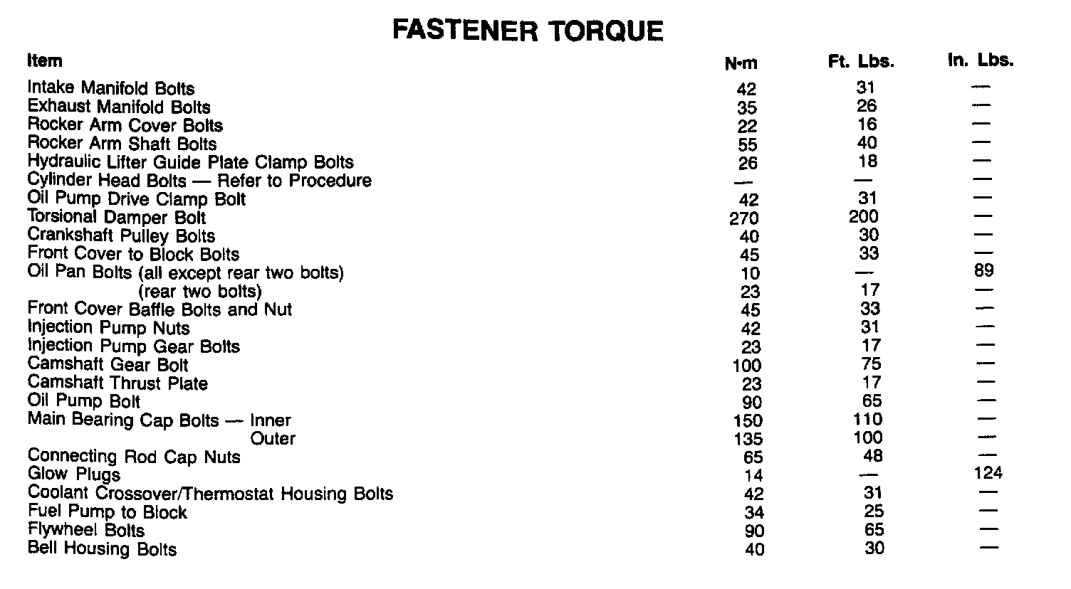 Fastener Tightening Specifications - Engine