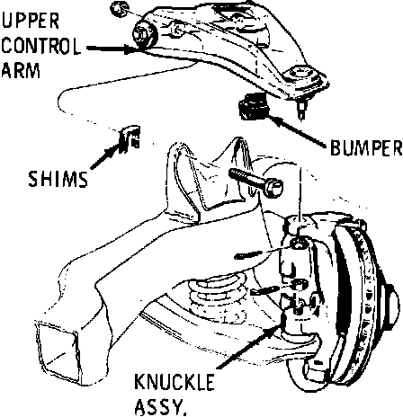 4. Remove upper control arm attaching nuts and bolts, Fig. 2. noting location of any shims removed.