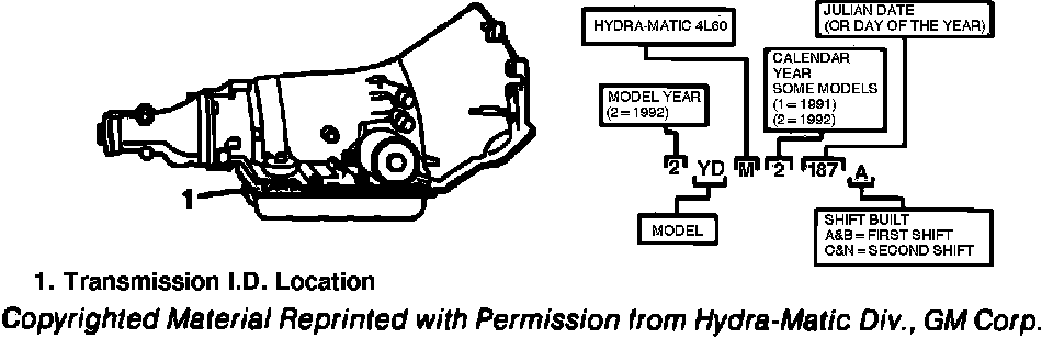 Transaxle identification information is found stamped into the case pan rail,