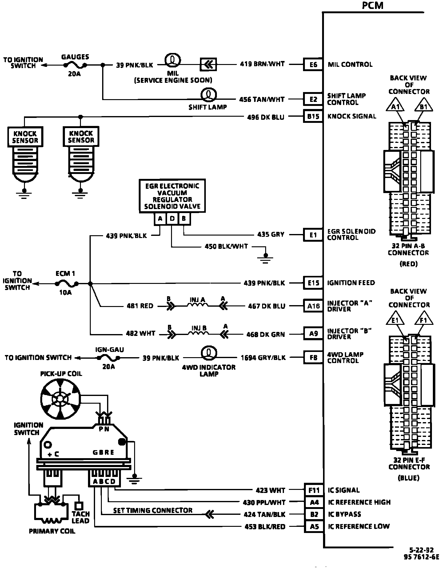 E1 = EGR SOLENOID CONTROL.
